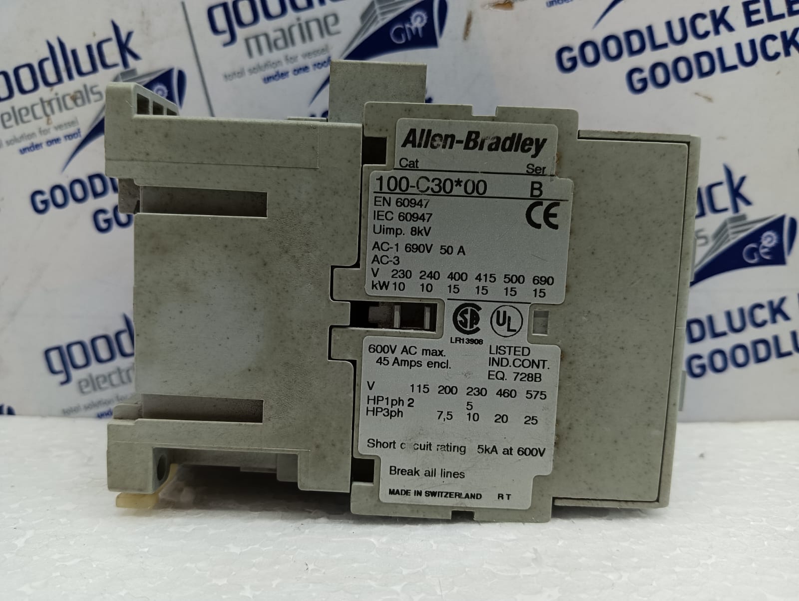 Product: Contactor Model No: 100-C30*00 Ser: B Uimp: 8kv Ac-1 690v 50a 230-690v 10-15kw 600v Ac Max. 45 Amps Encl. 115-575v 2-5 Hp1ph 7,5-25 Hp3ph Make: Allen-Bradley Made: Switzerland Condition: Used