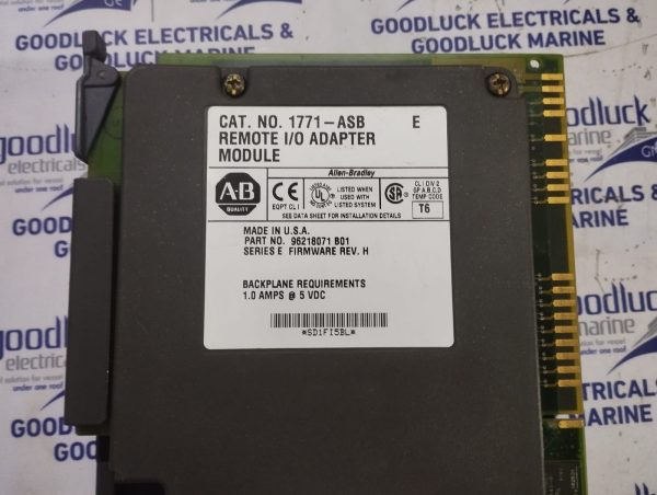 Product: Remote I/O Adapter Module Model No: 1771-Asb Part No: 96218071 B01 Series E Firmware Rev. H Backplane Requirements 1.0 Amps @ 5 Vdc Make: Allen-Bradley Made: Usa Condition: Used