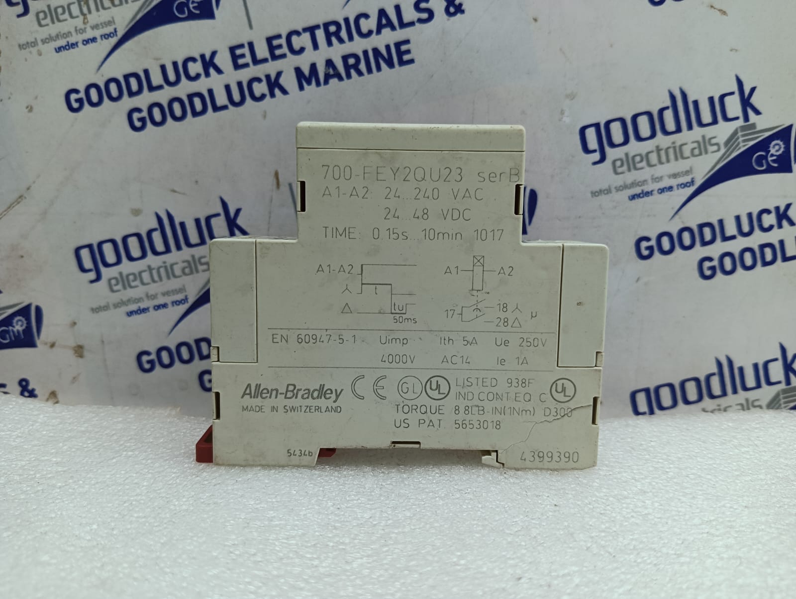 Product: Timing Relay Model No: 700-Fey2qu23 Series: B A1-A2: 24-240 Vac 24-48 Vdc Time: 0.15s – 10min 1017 Uimp: 4000v Ith: 5a Ue: 250v Ac14 Ie 1a Make: Allen-Bradley Made: Switzerland Condition: Used