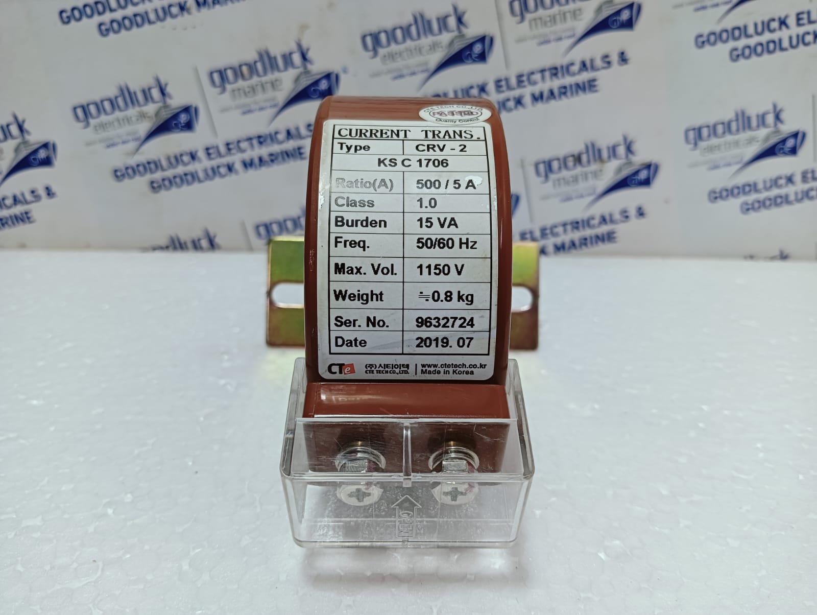 Product: Current Transformer Type: Crv-2 Ks C 1706 Ratio(A): 500 / 5a Class: 1.0 Burden: 15va Freq.: 50/60hz Max. Voltage: 1150 V Weight: 0.8 Kg Ser. No.: 9632724 Date: 2019. 07 Make: Cte Tech Made: Korea Condition: Used But Very Good Condition