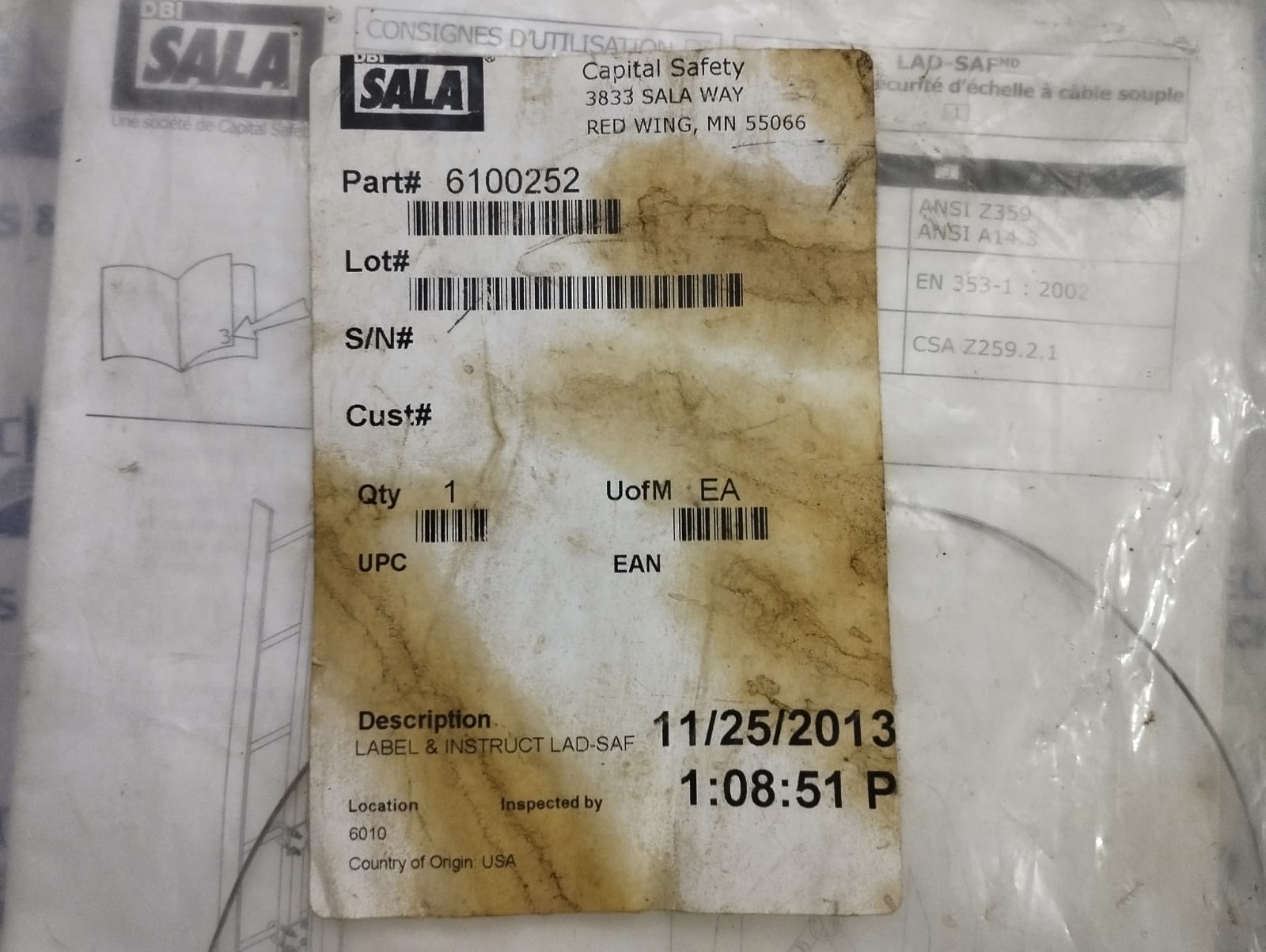 Dbi Sala 6100252 Lad-Saf Inspection Plate