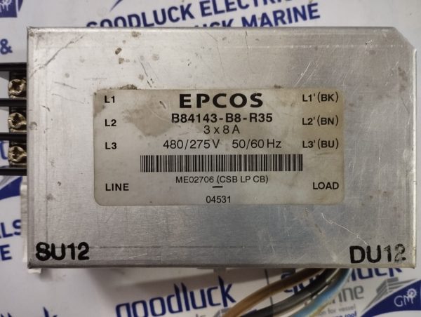Product: Power Line Filter Model No: B84143-B8-R35 480/275v 50/60hz Me02706 (Csb Lp Cb) Make: Epcos Condition: Used