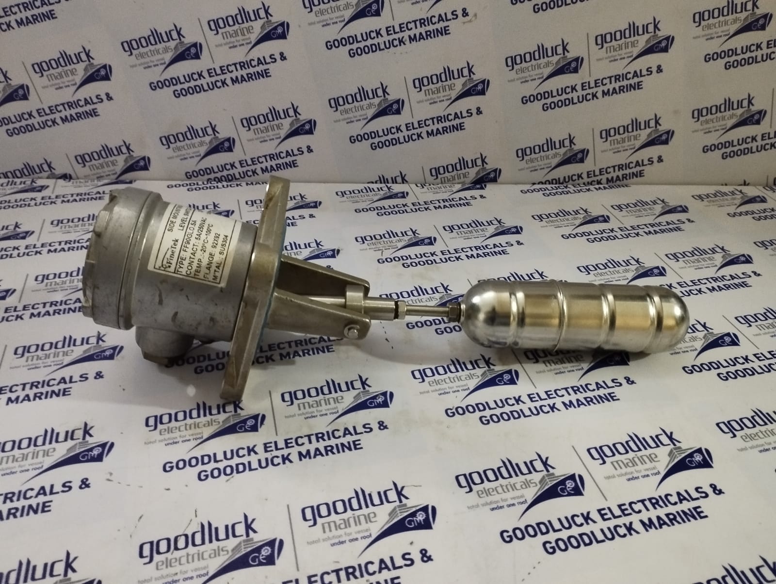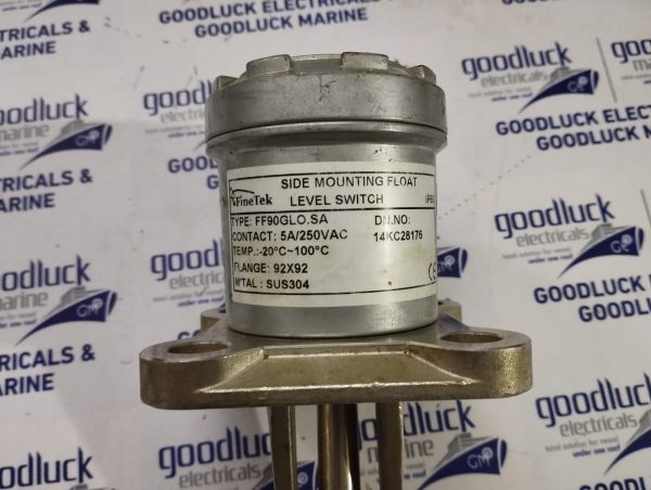 Product: Side Mounting Float Level Switch Model No: Ff90glo.Sa Contact: 5a / 250vac Temp: -20°C~100°C Flange: 92×92 M’Tal: Sus304 Dn.No: 14kc28176 Make: Finetek Condition: Used