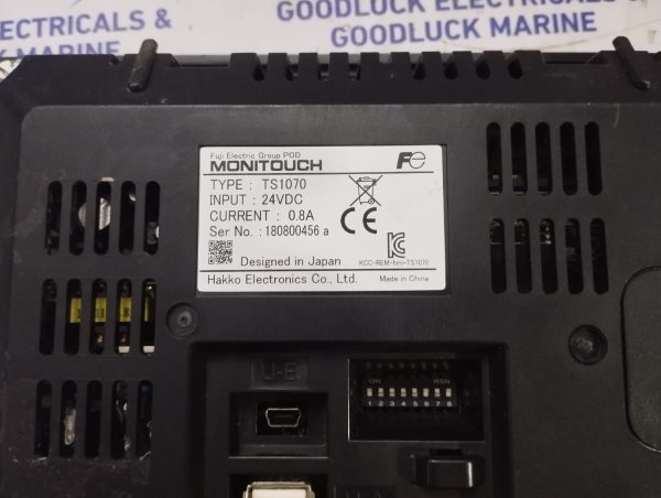 Product: Touch Screen Display Model No: Ts1070 Input: 24vdc Current: 0.8a S.No: 180800456 A Make: Fuji/Hakko Electronic Made: China Condition: Used