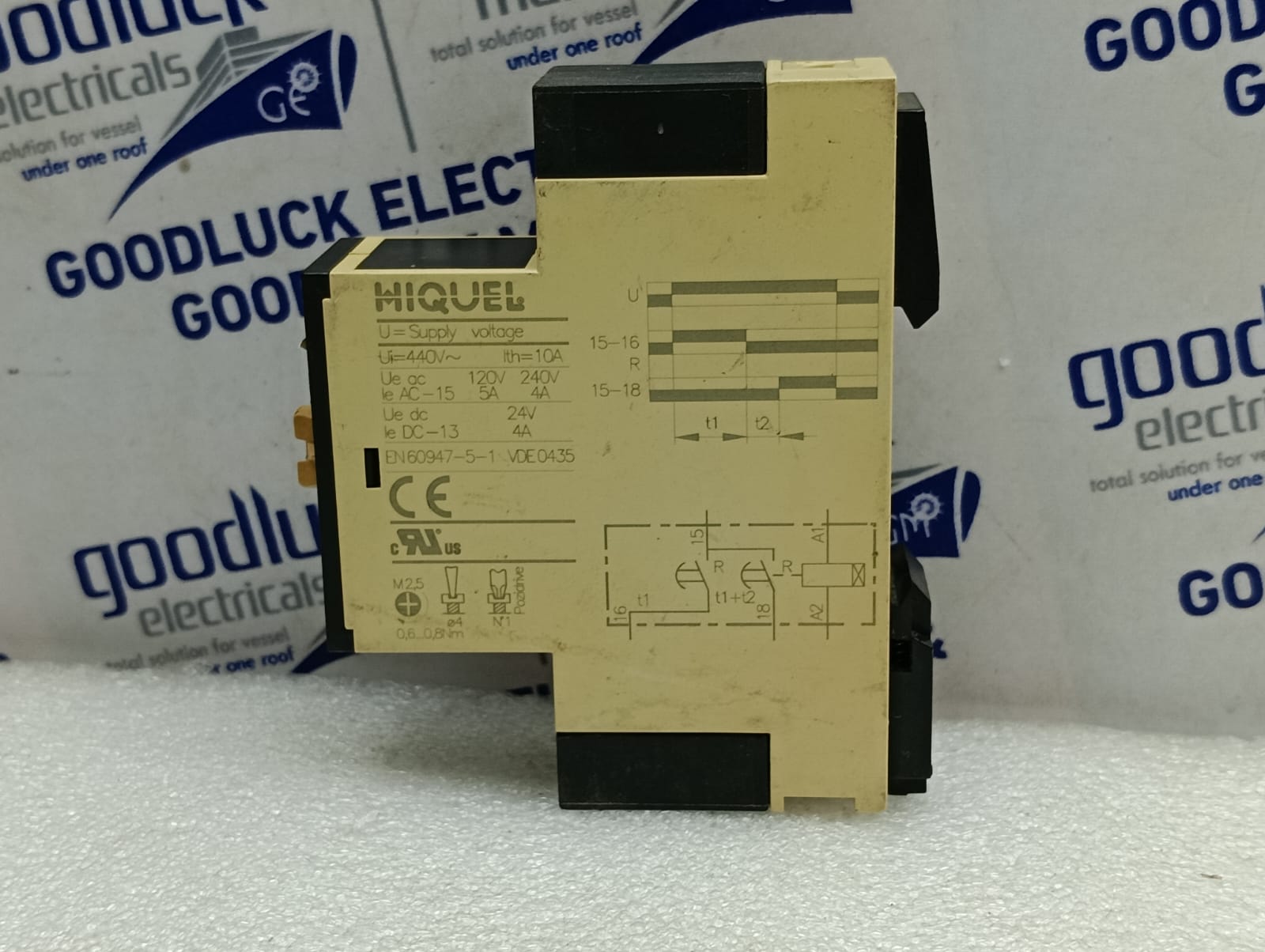 Product: Star-Delta Timer Model No: Ts 05 115vac Ui: 440v~ Ith: 10a Ue Ac: 120-240v Ie Ac-15: 4-5a Ue Dc: 24v Ie Dc-13: 4a Make: Hiquel Condition: Used