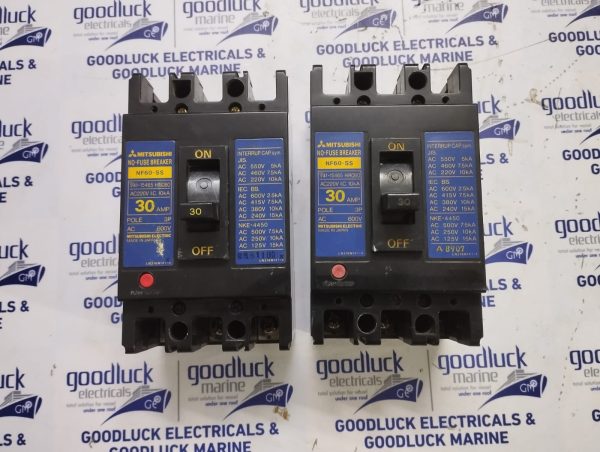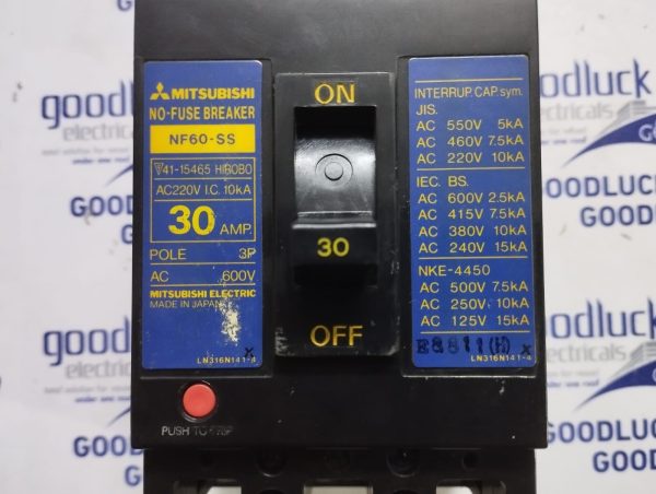 Product: No-Fuse Breaker Part No: Nf60-Ss Ac220v I.C. 10ka 30 Amp. Pole: 3p Ac: 600v Ac 550v 5ka Ac 460v 7.5ka Ac 220v 10ka Make: Mitsubishi