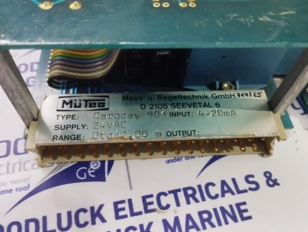 Product: Pcb Module Model No: Cargosy 901 Lishl 521202 Supply: 24 Vac Input: 4-20 Ma Range: 0 To 12 Make: Mutec Condition: Used