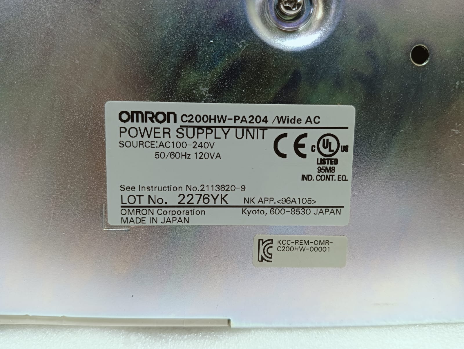 Product: Wide Ac Power Supply Unit Model No: C200hw-Pa204 Source: Ac100-240v 50/60hz 120va Make: Omron Made: Japan Condition: Used