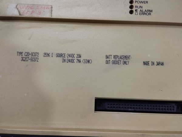 Product: Programmable Controller Model No: Sysmac C20 C20-Sc072 3g2c7-Sc072 Source: 24vdc 20w In: 24vdc 7ma (Sink) Make: Omron Made: Japan Condition: Used