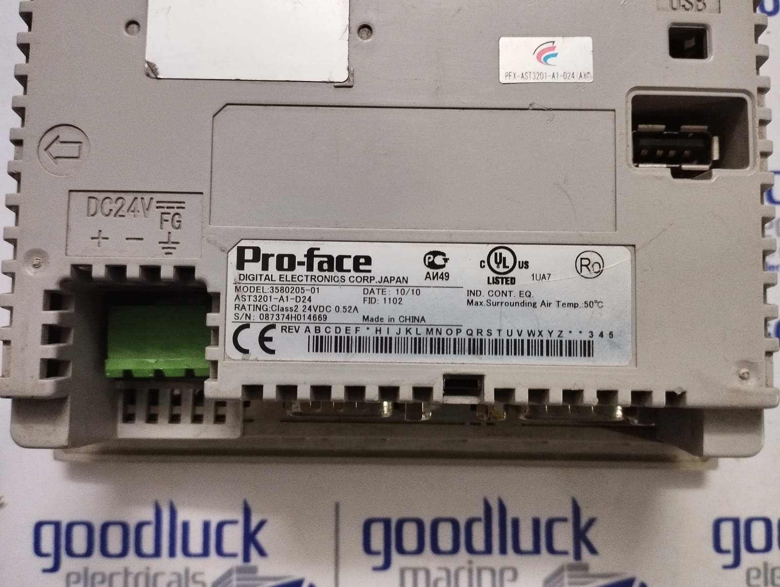 Product: Touch Screen Display Model No: 3580205-01 Ast3201-A1-D24 Rating: Class2 24vdc 0.52a Fid: 1102 S.No: 087374h014669 Max Surrounding Air Temp: 50°C Make: Pro-Face Made: China Condition: Used
