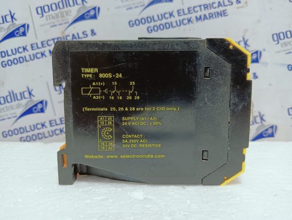 Product: Analog Timer Model No: 800s-24 Supply (A1/A2): 24vac / Dc, ±20% Contact: 5a, 250vac/ 24vdc Resistive Time: 0 – 60sec. Make: Selec Condition: Used