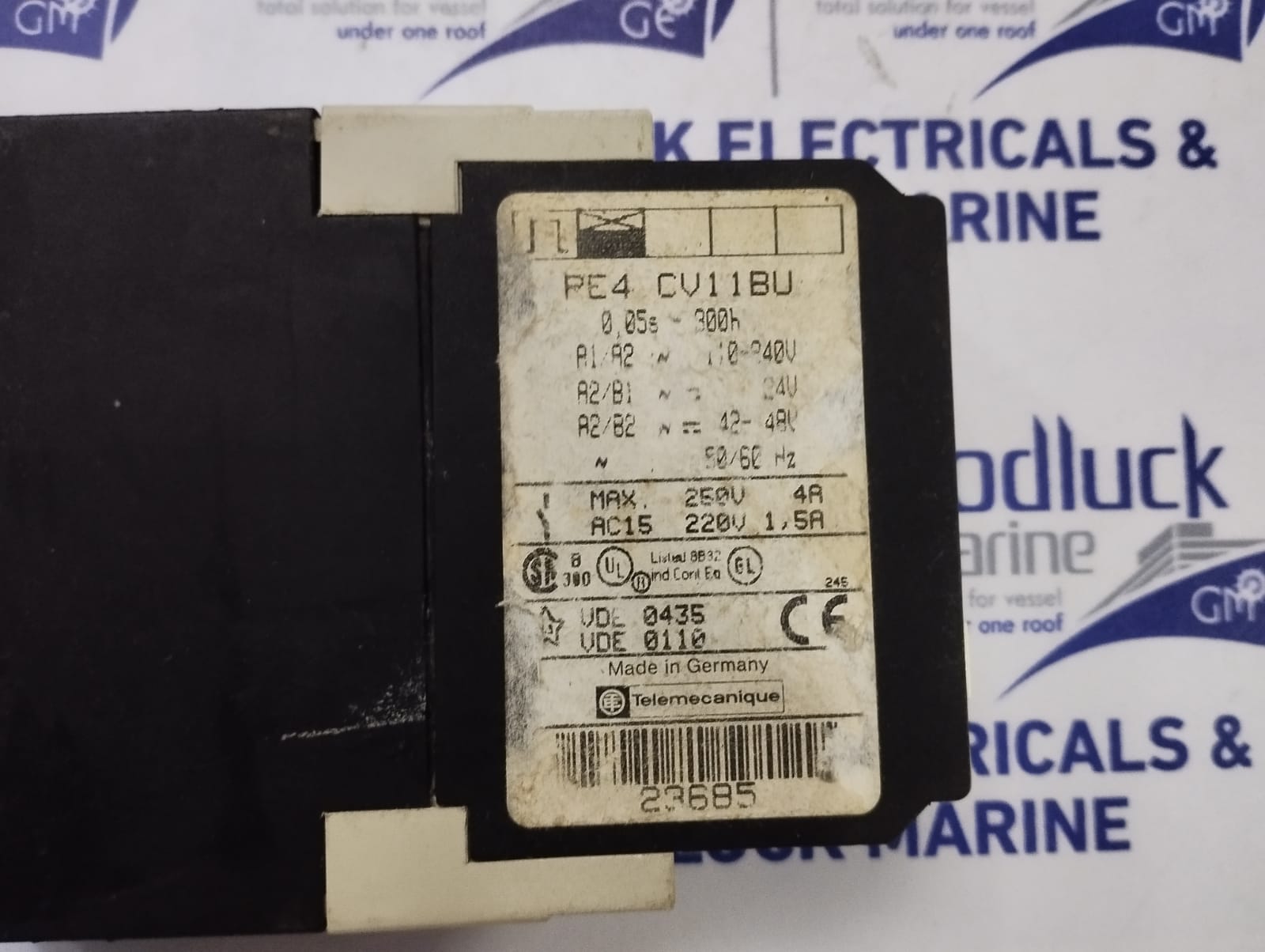 Product: Time Delay Relay Model No: Re4 Cv11bu 0,05s-300h A1/A2: 110~240v A2/B1: 24v A2/B2: 42-48v ~50-60hz Max. 250v 4a Ac15 220v 1, 5a Make: Telemecanique Made: Germany Condition: Used