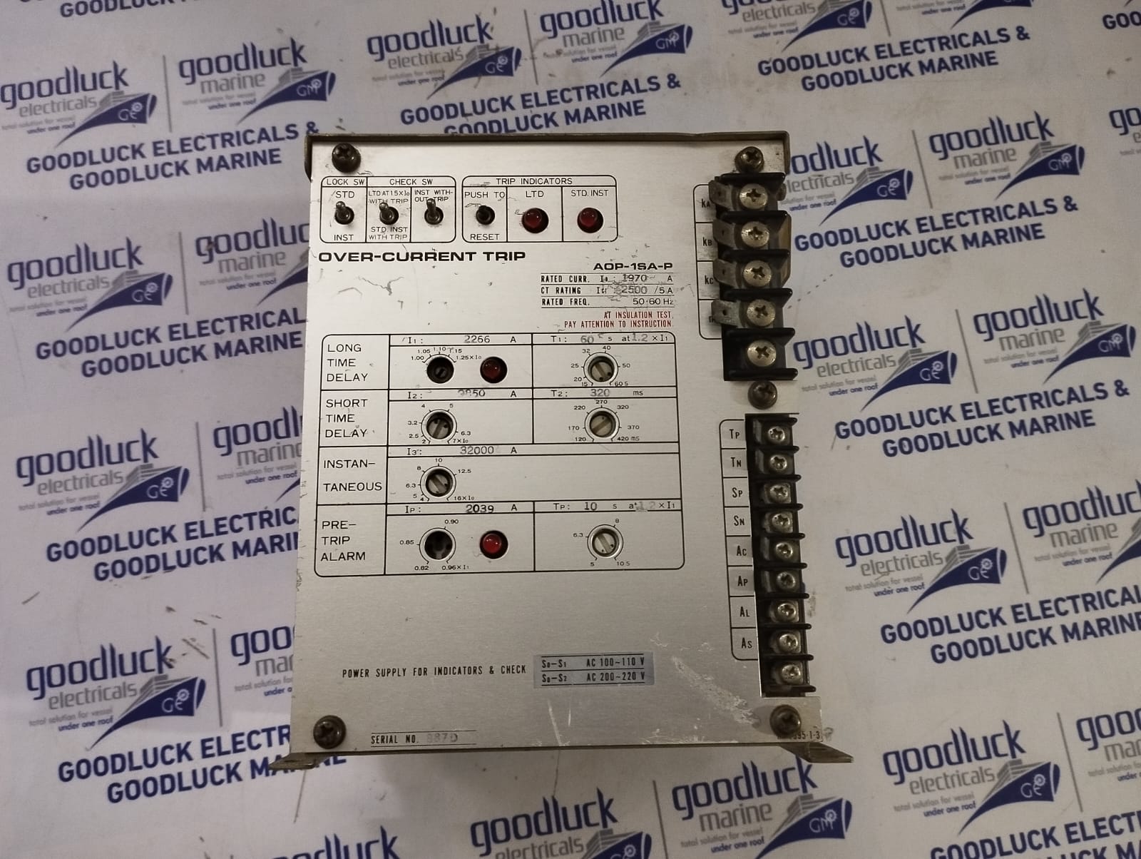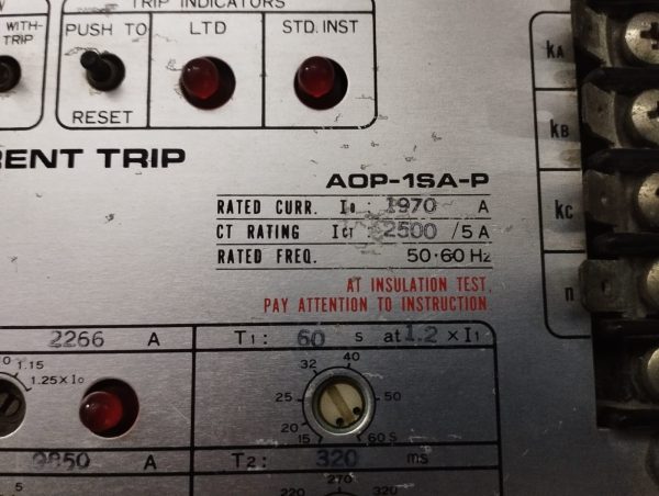 Product: Over-Current Trip Model No: Aop-1sa-P Rated Current: 1970a Ct Rating: 2500/5a Rated Freq: 50-60hz S/No: 887d Make: Terasaki Condition: Used