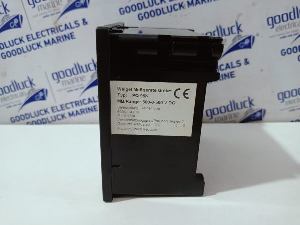 Product: Volt Meter Model No: Pq 96k Mb/Range: -500 – 0 – 500v Dc 600v Cat Iii Make: Weigel Made: Czech Republic Condition: New